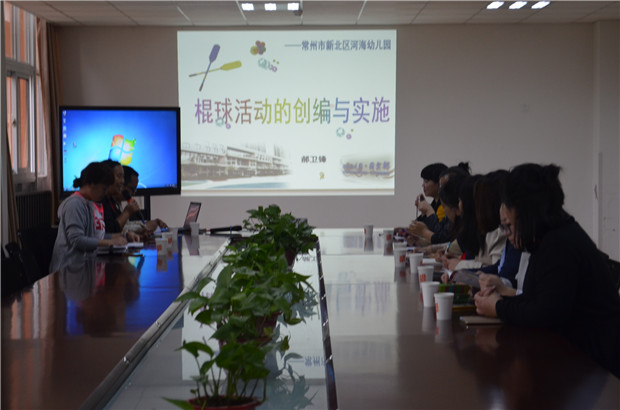 5月12日上午,无锡市新吴区梅村大地幼儿园园长葛祥花一行9人来到常州市新北区河海幼儿园国宾部进行了为期半天的参观交流活动。河海幼儿园园长万立纯、副园长王小洁以及棍球课题组部分成员参与活动。活动中,参观组先对阴雨天晨间活动进行了观摩,并与大班幼儿进行了一场棍球互动赛;随后,参观组继续观看了中班幼儿的棍球操;还聆听了河海幼儿园棍球课题组管亚静老师的 “棍球活动的创编与实践”讲座,双方就棍球活动的实践与研究进行了热烈的研讨互动。