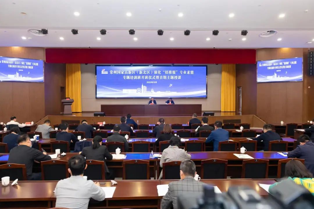 为深入学习贯彻党的二十大精神,全面落实全市“532”发展战略,建强专业团队,提升项目“招推服”质效,我区举办强化“招推服”专业素能专题培训班,10月29日召开开班仪式并进行首期主题授课。区党工委(区委)副书记、代理区长石旭涌做开班讲话,副区长杭宏伟主持开班仪式。