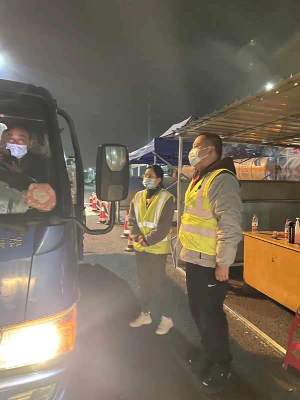 在这群人中,有一个娇小的身影——史雁翎,是建设局一名普通的党员志愿者。卡口执勤、信息登记、核酸检测......作为建设局内勤,接到命令的第一时间她便细致地安排好值班表,并总会给自己安排多一点、晚一点的班次。3月21日,当天值班的同事身体不舒服,史雁翎便主动请缨,承担起深夜卡口管控的值班任务。