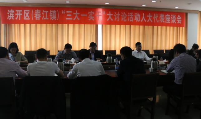 4月21日上午,滨开区(春江镇)组织部分人大代表召开了以“以生态宜居环境增创民生幸福新优势”为主题的“三大一实干”大讨论座谈会,18名人大代表参加了会议。