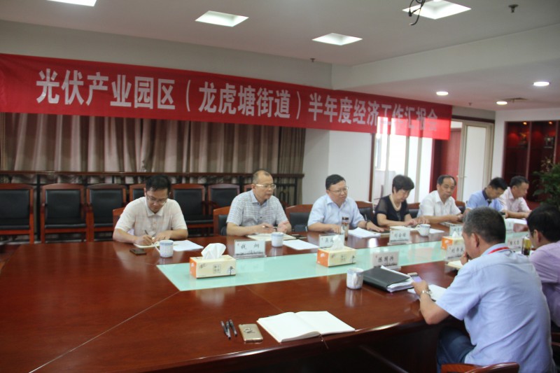 街道办事处主任刘书良从半年度经济指标完成情况、重点项目推进情况及经济运行中存在的难点三个方面进行了汇报,并就下一步街道将如何围绕推动企业转型升级、优化企业服务、聚焦科技创新来实现助力企业高质量发展的工作部署进行了详细阐述。 街道党工委书记陶文忠重点介绍了当前特色小镇建设和产城融合的情况。特色小镇建设作为龙虎塘街道发展的新引擎将是当前街道重点推进的工作,街道将积极通过对接政策、引进人才等方式助推产业转型升级。同时,他也提到龙虎塘传统龙头产业——光伏行业,今年受到5.31政策影响,面临极大的挑战,但机遇与挑战并存,行业的重新洗牌也将给坚持到最后的企业腾出更大的发展空间。