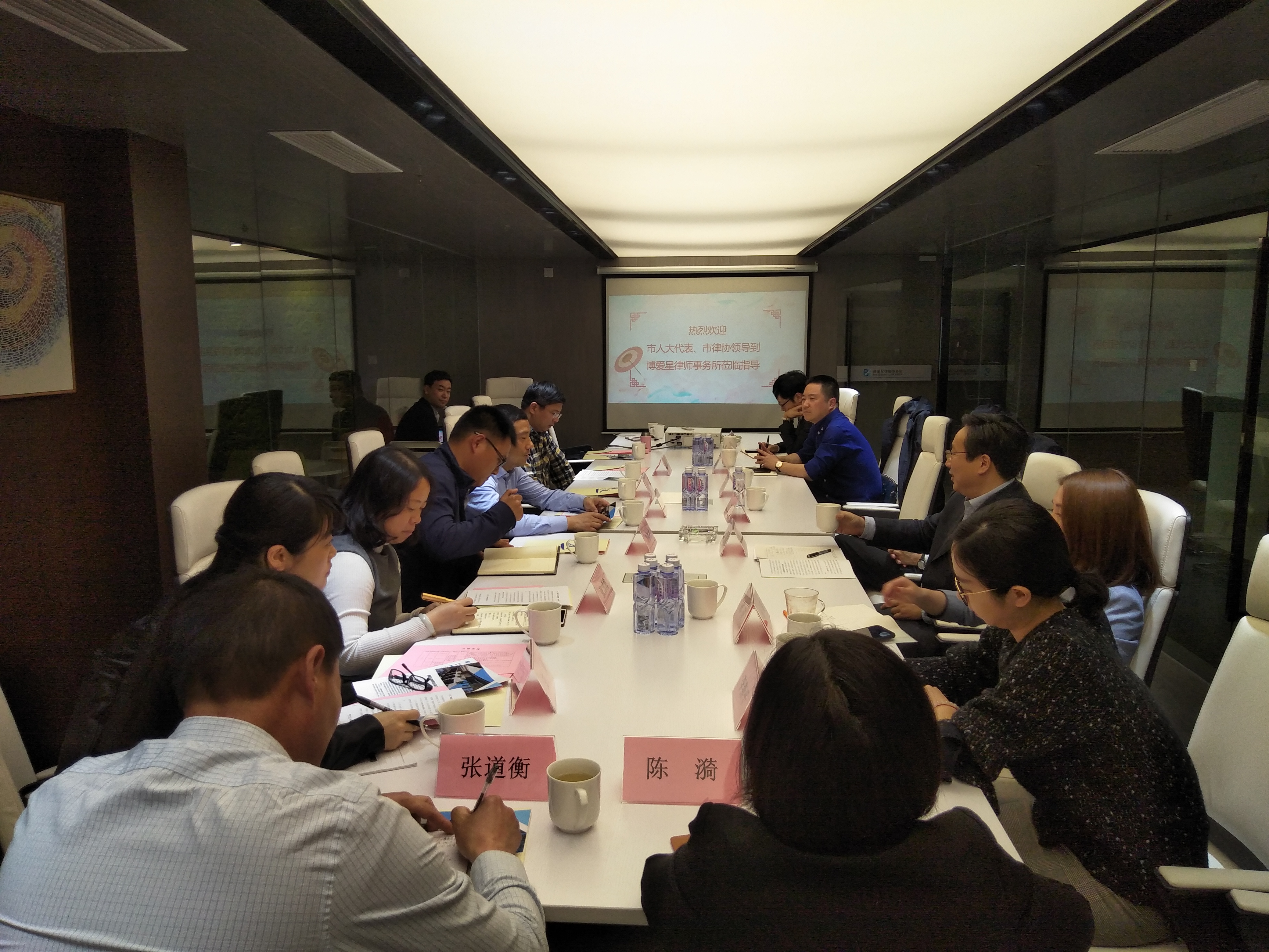 3月30日,根据市人大常委会工作部署和要求,市人大代表新北二组组长陶文忠带队赴江苏博爱星律师事务所开展了视察调研活动。全国人大代表润土瓜蔬合作社社长张道衡、新北区法院院长张少平等代表参加了本次活动。参加本次活动的还有常州市律师协会党委书记陈少宝等律协的部分领导。