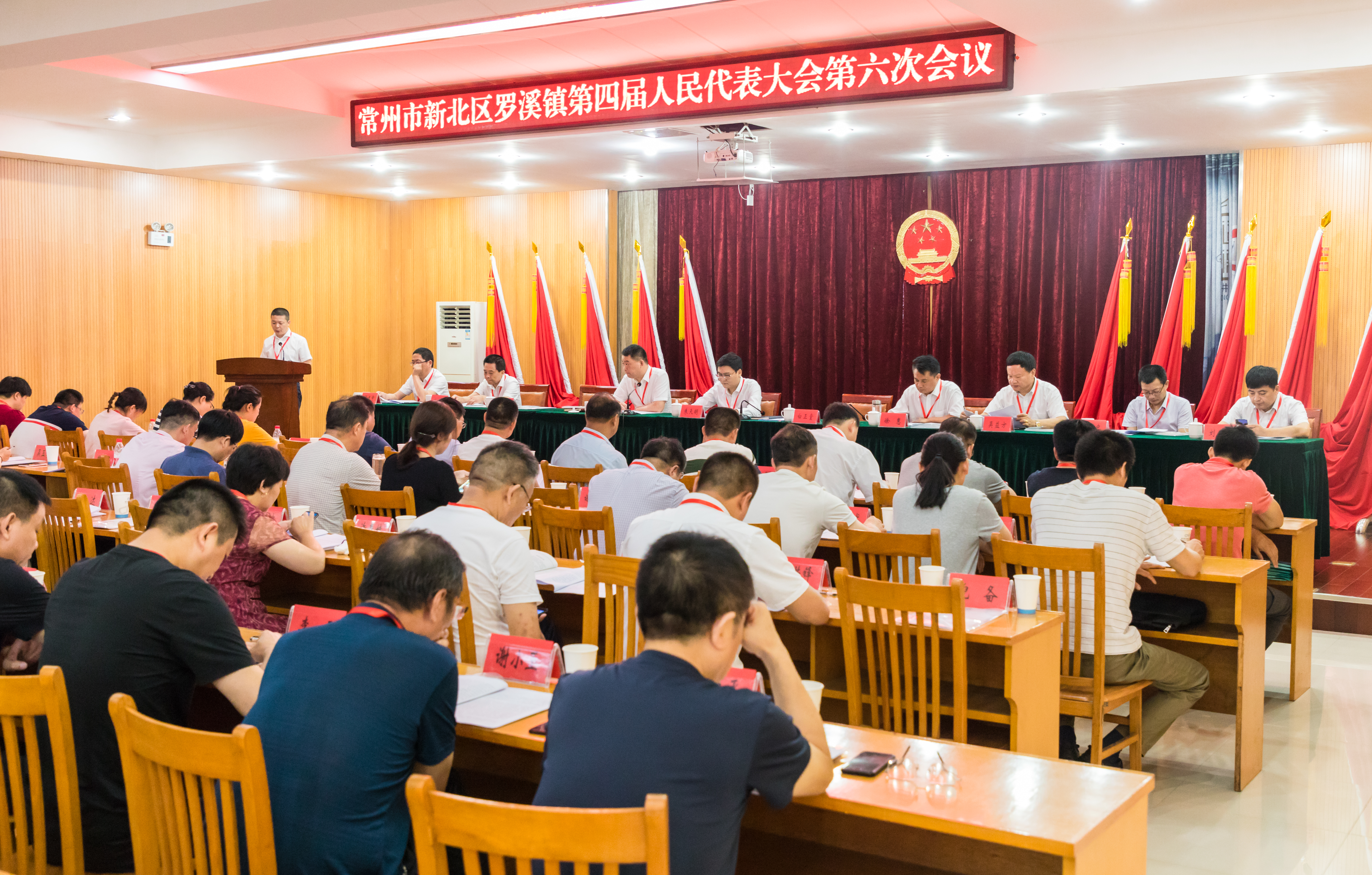 7月23日上午,罗溪镇第四届人民代表大会第六次会议在雄壮的国歌声中胜利开幕。本次大会应到代表68人,实到代表59人。此外,参加本次大会的还有区人大代表、区政协委员以及来自企事业单位的列席人员共77人。大会由罗溪镇人大主席张忠良主持。