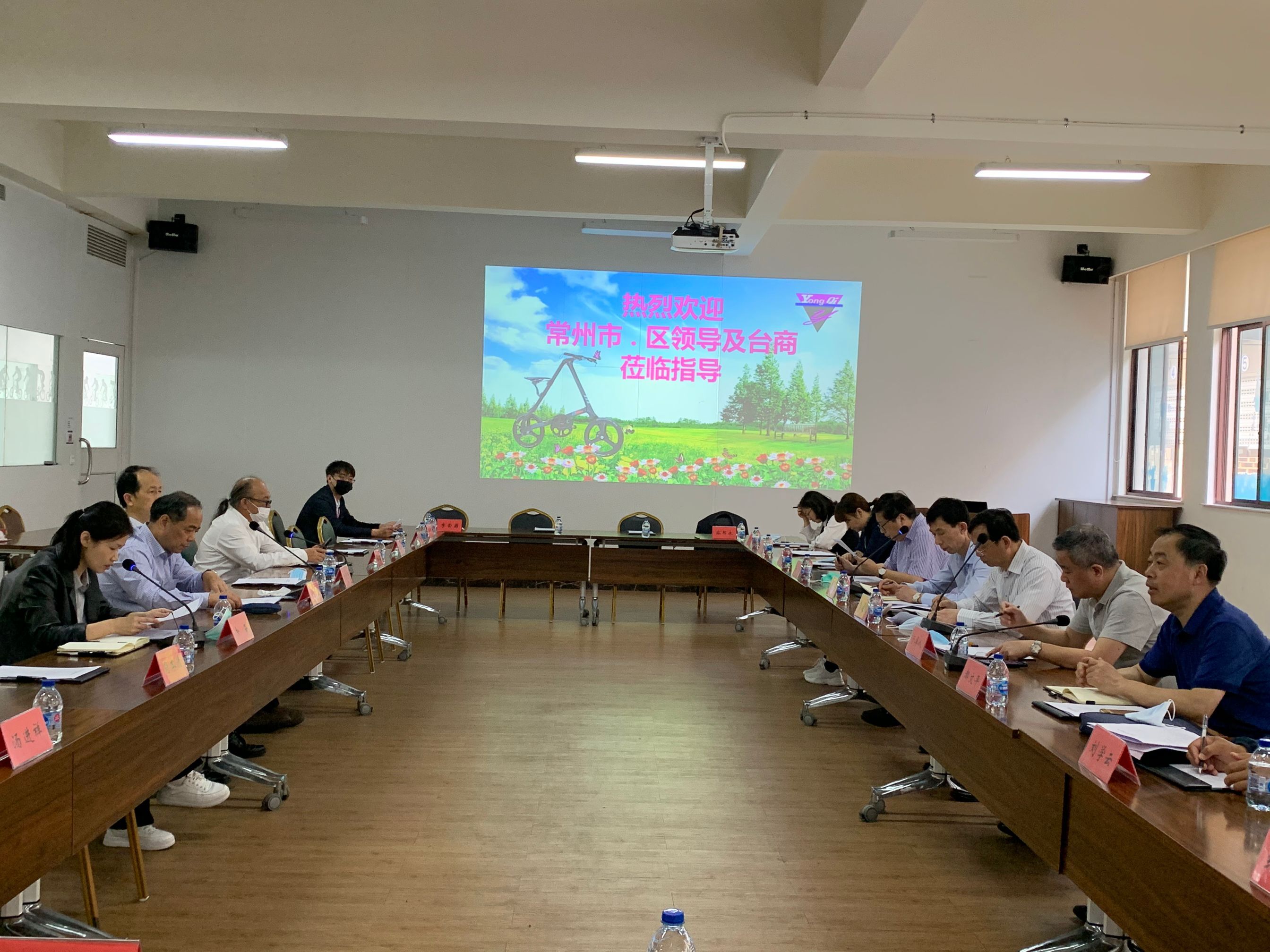 在新北区人大常委会副主任赵昊的陪同下,调研组一行前往永祺(中国)车业有限公司实地察看台企发展和惠台政策措施落实情况。在随后召开的座谈会上,听取我区贯彻落实实施意见的情况汇报,并与部分台商台胞座谈交流。