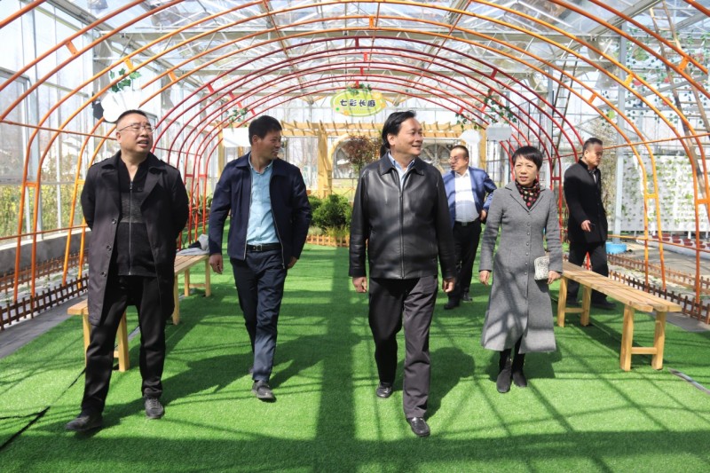 蒋自平一行参观考察了张道衡润土瓜蔬基地和史陈家村田舍蔬果,并进行了座谈交流。张道衡向大家介绍了温室大棚种苗长势和种植心得,同时传达分享了他作为全国人大代表在参加全国“两会”期间的所见所闻、所感所悟。周敏介绍了史陈家村的美丽乡村建设情况和愿景。