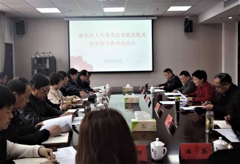 3月12日上午,新北区人大召开常委会党组及机关党史学习教育动员大会。会议深入学习贯彻习近平总书记关于学习党史的重要讲话和批示精神,落实好中央、省、市、区委关于党史学习教育的重要指示,对人大常委会党组及机关各级党组织和党员干部开展“6+4”(“学党史悟思想传承红色基因”六大专题活动和“办实事开新局依法履职为民”四大实践行动)党史学习教育进行集中动员部署。区人大常委会主任、党组书记陆敏作动员讲话,副主任赵昊、刘金曙、花震亚,党组成员夏志文出席会议,赵昊同志主持会议。