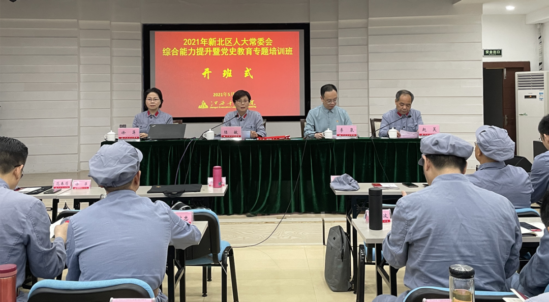 5月11日,在江西干部学院培训教室里,新北区人大常委会综合能力提升暨党史教育专题培训班在雄壮的国歌声中拉开帷幕。区人大常委会全体组成人员和部分全国、省、市区人大代表参加本次培训。