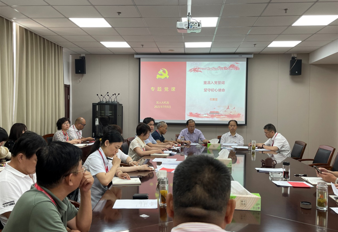 为进一步巩固加深党史学习教育实践成果,7月5日上午,区人大机关召开“学党史 悟思想 办实事 开新局”专题组织生活会。区人大常委会主任、党组书记陆敏,区人大常委会副主任赵昊、刘金曙、花震亚、沈春英,党组成员范春苟、夏志文及机关所有党员参加本次会议,区委党史学习教育第二指导组联络员列席本次会议。会议由区人大机关第一党支部书记黄丽娟主持。