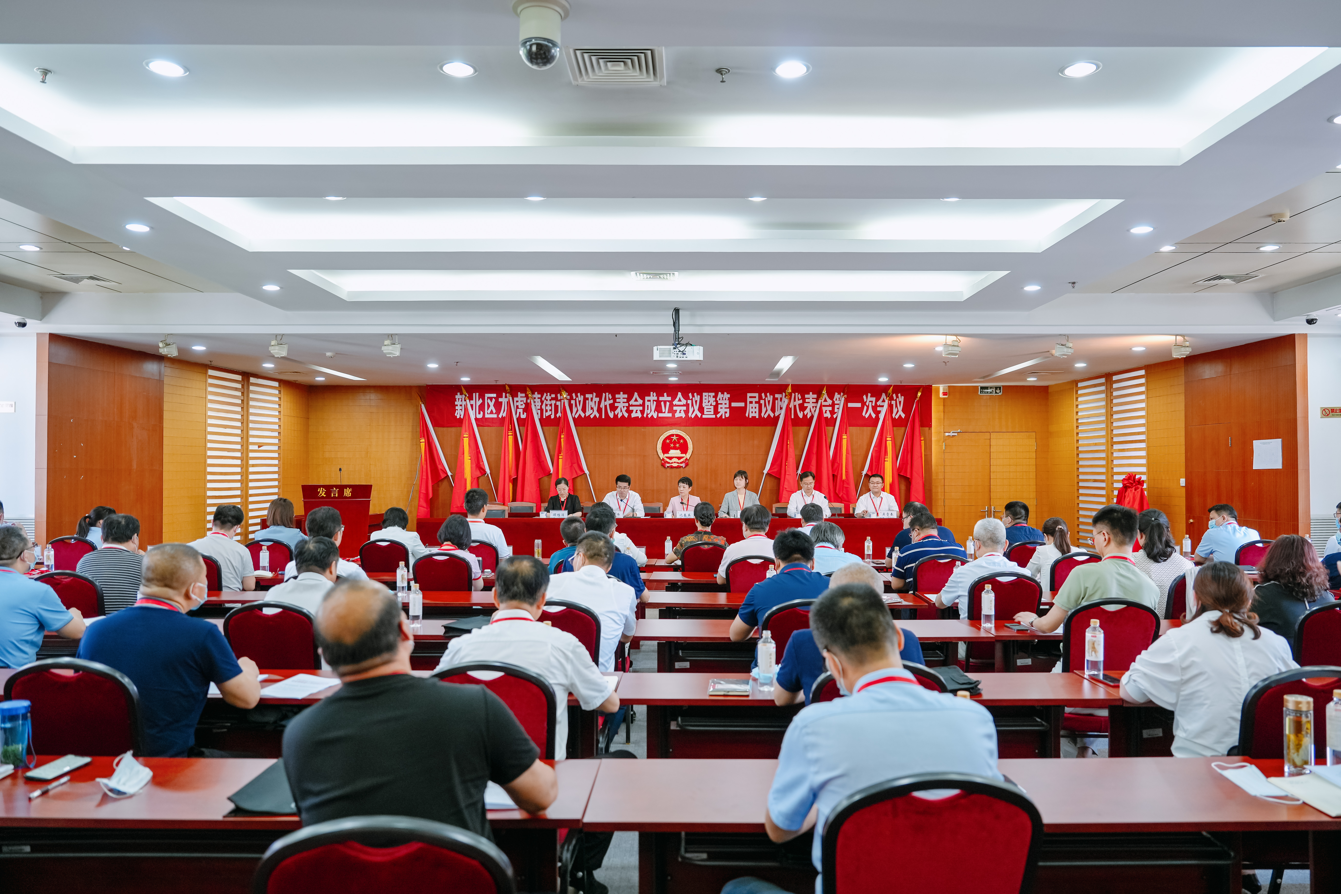 为进一步践行全过程人民民主,加强和规范基层民主政治建设,提高街道工作决策科学化、民主化水平,使街道发展更好地体现和反映人民的意志和愿望,推动街道经济和社会各项事业高质量发展,根据市、区人大相关文件精神,6月25日下午,龙虎塘街道议政代表会成立会议暨龙虎塘街道第一届议政代表会第一次会议胜利召开,常州市新北区人大常委会副主任沈春英,人事代表工委主任刘玛娳、副主任潘英出席会议,街道全体党政领导、各局办、直属单位负责同志参加会议。 本次会议共分为两个阶段,第一阶段为龙虎塘街道议政代表会成立大会,第二阶段为龙虎塘街道第一届议政代表会第一次会议。 在成立大会上,龙虎塘街道人大工委主任钱炯全面介绍了龙虎塘街道议政代表会的成立筹备情况,明确了街道议政代表制度出台的背景、主要工作内容和任务,并宣读了《关于确定龙虎塘街道第一届议政代表会代表的决定》。
