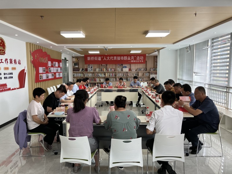 为进一步落实区人大常委会联系区人大代表、区人大代表联系基层人大代表和群众的工作要求,深入践行和发展全过程人民民主,切实推动区域发展开拓新征程、实现新跨越、谱写新篇章。 9月16日上午,新桥街道开展“人大代表接待群众月”锦海社区专场活动,新北区人大常委会副主任刘金曙、新桥街道人大工委主任王雷平参加,部分区人大代表、街道议政代表、相关村(社区)、局(办)、企业负责同志和群众代表共同参与。