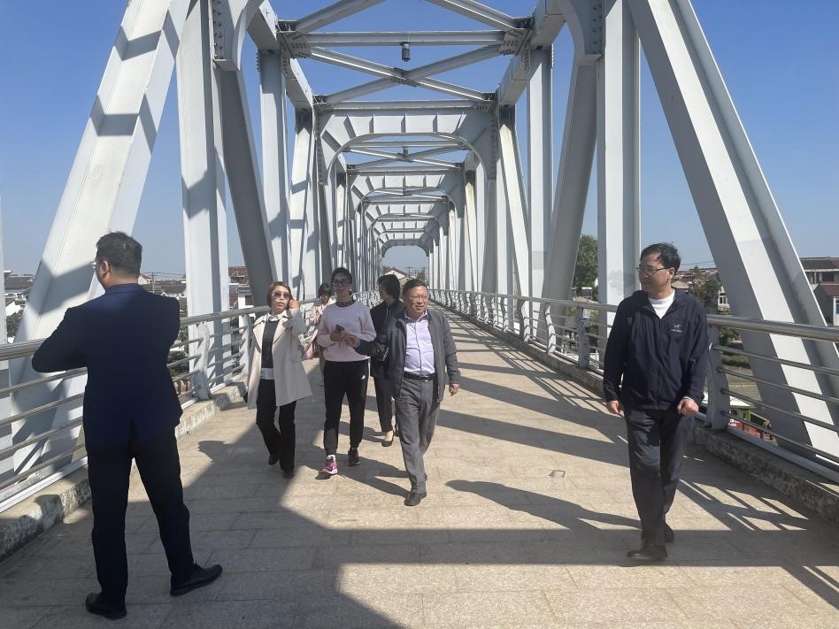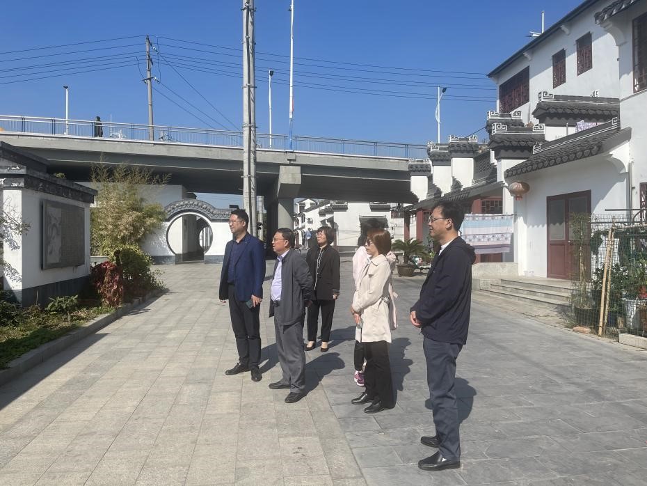 调研组首先来到大运河生态廊道,了解奔牛镇大运河文化带建设工作。大运河流经奔牛镇区段全长11.6公里,市镇核心区段2.8公里。从奔牛公园出发,一路经过运河北岸、天禧桥、万缘桥、运河南岸、紫竹园等点位。生态廊道不仅是保护传承利用运河文化为主题的亮点工程,更是居民日常休闲娱乐常去场所。运河南岸筑休闲步道,150多户民居立面翻新,粉墙黛瓦。调研组深刻感受到运河生态廊道的历史文化底蕴,也肯定了廊道对丰富百姓生活的积极意义。