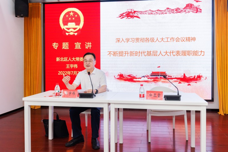 王宇伟以“深入学习贯彻各级人大工作会议精神、不断提升新时代基层人大代表履职能力”为题进行专题宣讲。王宇伟指出,要深刻领会全国各级人大工作会议有关精神和要求,并学深悟透,不断提高自身履职能力,切实助力经济社会发展,以实际行动迎接党的“二十大”胜利召开。