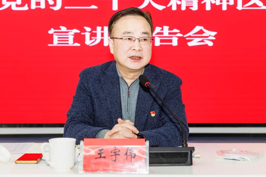 王宇伟从深刻领会党的二十大主题和主要成果、牢牢把握过去5年工作和新时代10年伟大变革的重大意义、坚持推进马克思主义中国化时代化、牢牢把握中国式现代化的特色和本质要求、牢牢把握全面建设社会主义现代化国家的目标任务、坚持党的全面领导和全面从严治党、坚持“五个必由之路”应对风险挑战等七个方面对党的二十大精神进行了深入阐述和系统宣讲。