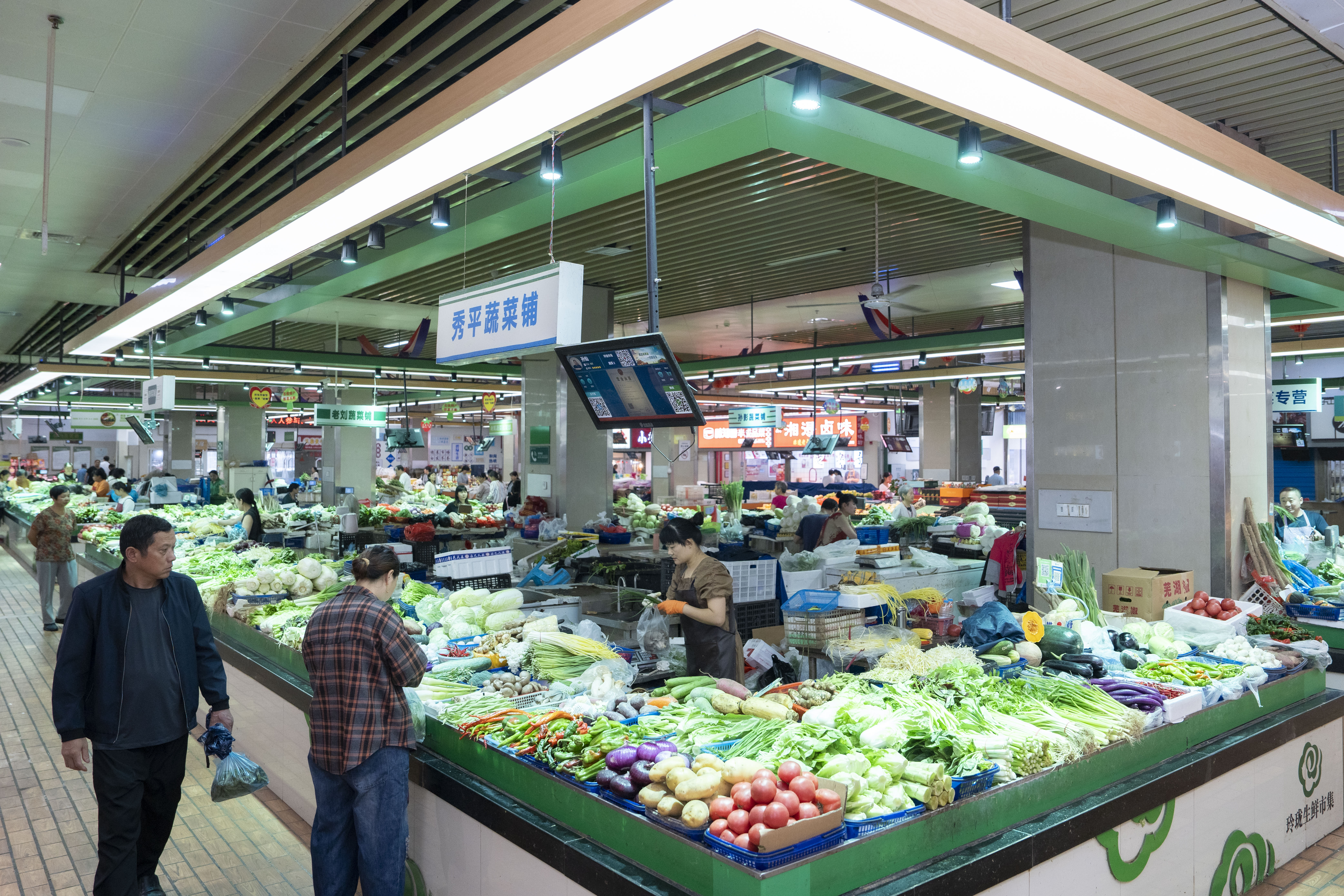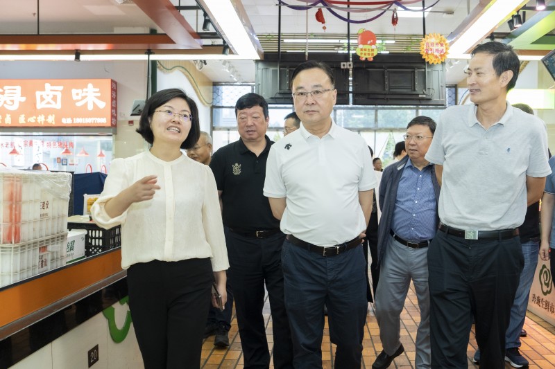 调研组一行来到龙虎塘玲珑生鲜市集察看农产品质量安全情况,作为典范文明城市创建的样本框重点农贸市场,新北区和龙虎塘街道2020年投入近600万元,对市场进行全面提升改造,全面引进智慧化管理,通过智能采集、智能检测、智能支付、商户信息公示、食品安全及交易追溯、大数据管理等智慧化管理功能和管理措施,使市场在管理、服务和监管方面,能更快更好的实现信息网络化、透明化、工作规范化、管理现代化。