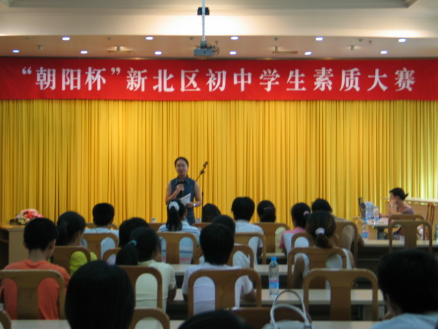 8月18日,由共青团新北区委、新北区社会事业局共同举办的“朝阳杯”新北区初中学生素质大赛在区政府创业厅举行了预赛,来自全区18所中学的代表队参加了比赛。 本次预赛分四个环节举行,首先是参赛的三名选手用中英文进行三分钟的自我介绍,各参赛队纷纷使出了自己的看家本领,流利的英语、精彩的介绍不时博得了场下观众的喝彩。第二个环节是知识问答,参赛选手要在指定的时间内回答十五道选择题,在比赛现场,各参赛队也是胸有成竹,展示了扎实的基本功。接着进行了颇为精彩的即兴回答,参赛的中学生对社会热点问题的独到见解和侃侃而谈也充分显示了当前素质教育进程的推进和提高。在最后的才艺展示环节,中学生们自遍自演的相声、小品以及朗诵和演奏等节目则让我们充分领略了他们多才多艺的一面。 通过四个比赛环节的综合展示,最终,实验中学、国际学校等六所学校的代表队进入了决赛,决赛将于9月底举行。     8月18日,由共青团新北区委、新北区社会事业局共同举办的“朝阳杯”新北区初中学生素质大赛在区政府创业厅举行了预赛,来自全区18所中学的代表队参加了比赛。本次预赛分四个环节举行,首先是参赛的三名选手用中英文进行三分钟的自我介绍,各参赛队纷纷使出了自己的看家本领,流利的英语、精彩的介绍不时博得了场下观众的喝彩。第二个环节是知识问答,参赛选手要在指定的时间内回答十五道选择题,在比赛现场,各参赛队也是胸有成竹,展示了扎实的基本功。接着进行了颇为精彩的即兴回答,参赛的中学生对社会热点问题的独到见解和侃侃而谈也充分显示了当前素质教育进程的推进和提高。在最后的才艺展示环节,中学生们自遍自演的相声、小品以及朗诵和演奏等节目则让我们充分领略了他们多才多艺的一面。 通过四个比赛环节的综合展示,最终,实验中学、国际学校等六所学校的代表队进入了决赛,决赛将于9月底举行。     |