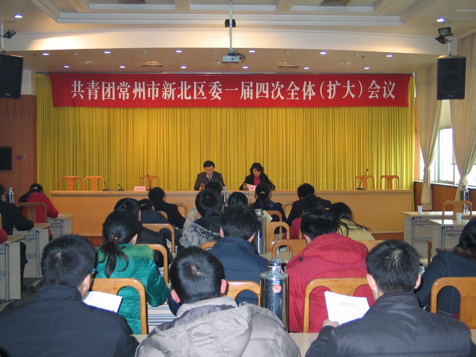 1月25日,共青团新北区委一届四次全体(扩大)会议在区政府创业厅隆重召开。 团区委副书记杨杰作了工作报告,回顾总结了2006年全区团的工作,并认真分析形势,研究部署了2007年工作任务。会上,河海街道团工委、薛家镇团委、新桥中学团委分别作了交流发言。 区委副书记杜吉宾到会讲话,并为获得江苏省五四红旗单位的河海街道团工委颁发了奖牌。杜书记在充分肯定一年来共青团所做出成绩的同时,对下阶段共青团工作具体提了三点意见:一是要认清形势,加大力度,把学习贯彻党代会精神作为新北青年的共同追求,把培养青年人才作为新北团组织的共同使命,为又好又快发展培养大批青年人才;二是要服务大局,奋发有为,组织动员广大团员青年积极投身创新创业、共同建设和谐新北、合力打造生态城区,为又好又快发展奉献青春智慧;三是要夯实基础,增强活力,进一步加强团的基层组织建设、提高团干部的能力与素质,深入推进团工作创新创优。
