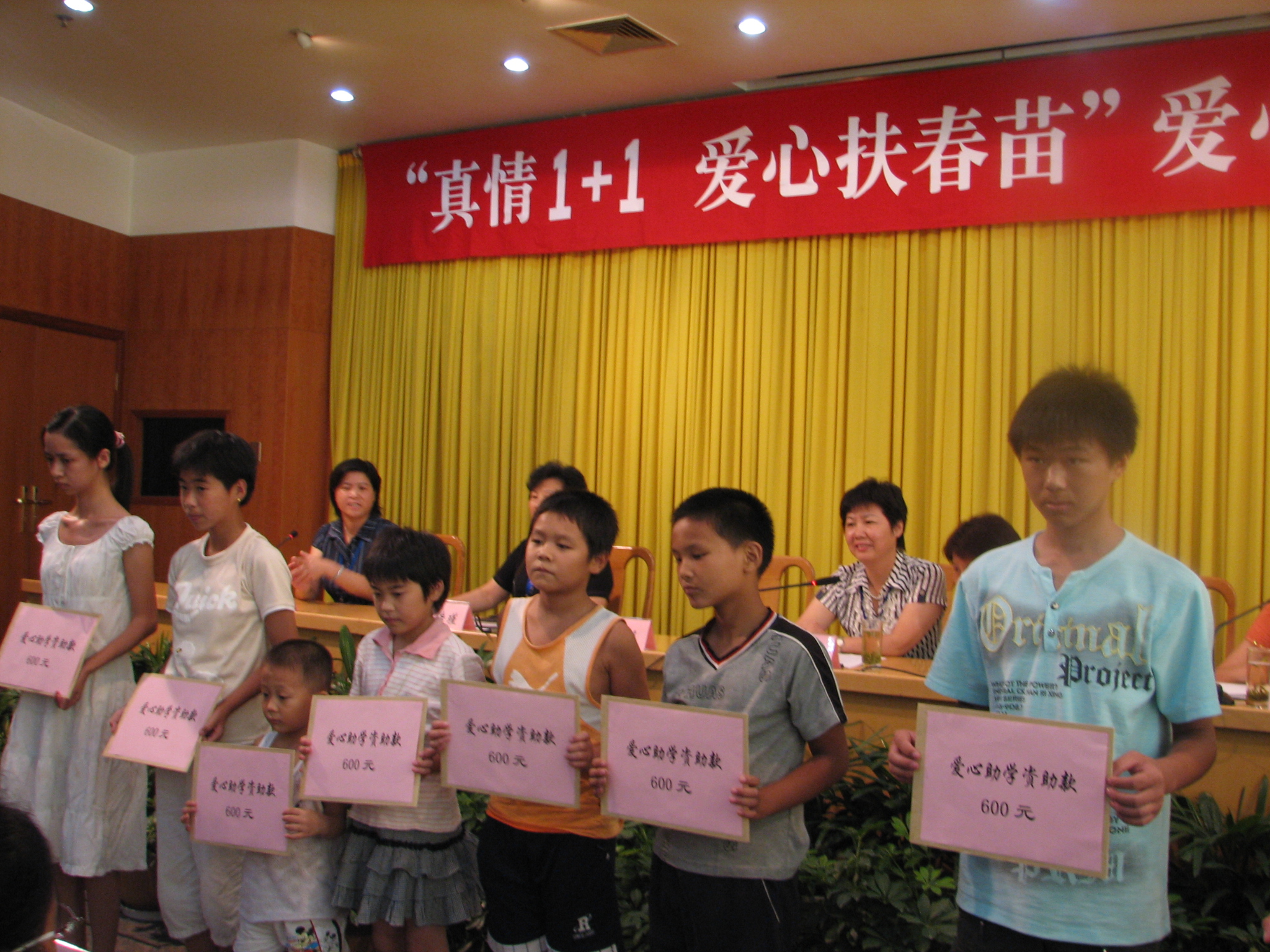 为进一步推动新北区助学活动的深入开展,2007年8月23日,“真情1+1 爱心扶春苗——爱心助学推进活动”在新北区政府三楼创业厅顺利召开,各乡镇、街道、部分区级企业工会主席、团(工)委书记、妇联主席以及爱心助学活动资助方与受助学生代表参加了此次活动,活动现场温馨的气氛令人感动! 新北区妇联苏传瑾主席回顾了爱心扶春苗助学活动开展三年来的情况,并号召更多的爱心人士参加帮困助学活动!受助学生代表真诚地向爱心人士表达了感谢,并表示将刻苦学习,以优秀的成绩回报党和社会的关心和帮助。冲电气软件公司和区财政局作为资助方代表,结合过去三年的资助经历,表达了做好爱心助学活动的坚定信念!区女干联的同志们在活动现场再一次献出爱心,为贫困学生献出助学金共5000元,并为孩子们准备了新学期的书包、笔记本、笔等文具用品。 副区长胡秀芳同志出席活动并讲话,她充分肯定了此项活动的积极意义,要求各级组织总结经验,再接再厉,要坚持广泛性原则,发动群众的力量,要坚持长期性原则,使帮困助学深入人心,要突出经常性原则,在孩子们需要时,及时地给予帮助!切实将好事办实,实事办好。并深切地希望受助的学生克服困难,扬起理想的风帆,努力学习,长大回报社会,建设家乡! “真情1+1爱心扶春苗”助学活动,自2004年6月28日,由区总工会、区妇联、团区委联合发起,迄今为止,这项活动共结对资助了130名学生,资助金额已达25万元,帮助了许多贫困家庭,在全区营造了和谐的社会氛围。