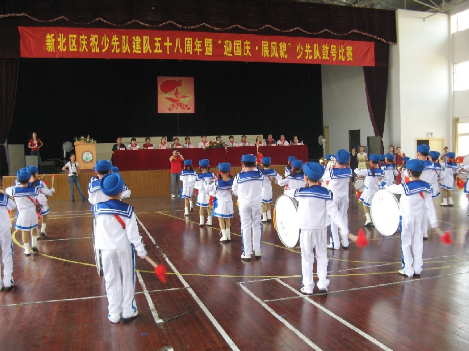 9月27日下午,新北区团委、教育文体局、少工委联合举办了新北区庆祝少先队建队五十八周年暨“迎国庆·展风貌”少先队鼓号比赛,比赛在常州市国英小学体育馆举行。区委常委组织部陈正春部长、团市委夏明书记等领导莅临比赛,并作了重要讲话。比赛充分展示了我区少先队员昂扬向上、团结进取的精神风貌,经过激烈的角逐,龙虎塘中心小学、国英小学、新华实验小学代表队将代表新北区参加常州市少先队鼓号比赛。