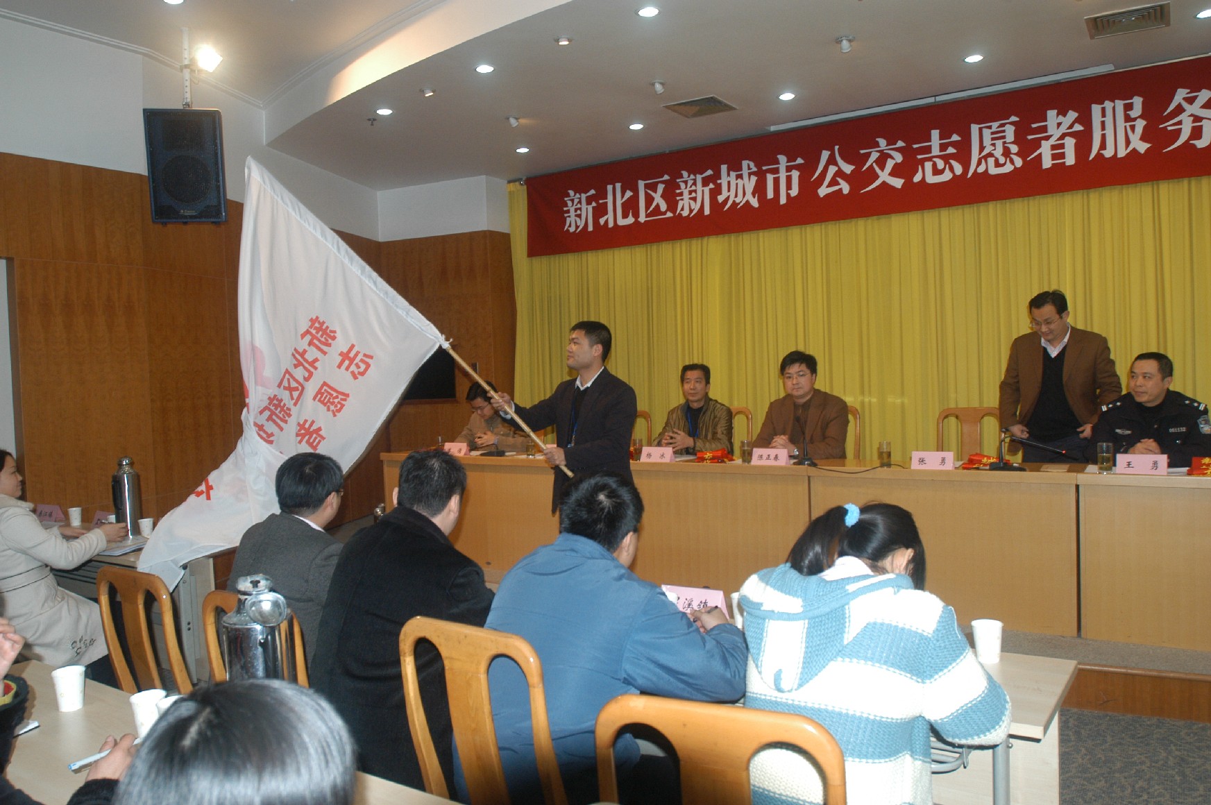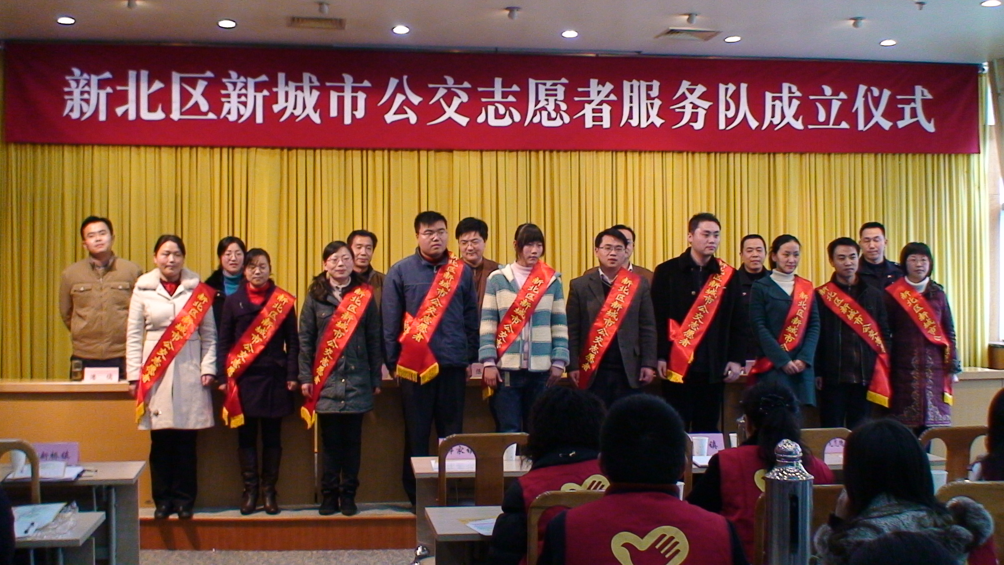 2007年12月24日下午,新北区新城市公交志愿者代表在区管理中心创业厅隆重聚会,参加新北区新城市公交志愿者服务队成立仪式,迎接常州市新城市快速公交BRT的到来。区委常委、组织部部长陈正春同志、区宣统部副部长、文明办主任杨冰同志、团市委副书记张勇同志、区交巡警大队大队长王勇同志、团区委书记曹瑜同志出席了成立仪式。 在成立仪式上,陈正春部长作了动员讲话,要求志愿者要发扬“奉献、友爱、互助、进步”的志愿精神,争做快速公交的宣传者,向市民宣传好常州建设快速公交的意义,介绍好快速公交的有关情况;争做文明交通的表率,指导市民如何安全、合理的乘车、通行。团市委副书记张勇同志为新北区新城市公交志愿者服务队授旗,各位领导还为志愿者佩戴了标志带,常州公交集团为志愿者代表发放了《常州快速公交一号线测试纪念票》。最后,区交警大队就如何为BRT的顺利运行做好志愿服务工作为志愿者做了培训。 从12月25日开始,新北区新城市公交志愿者服务队的志愿者们就要走上街头,开始他们的志愿服务。安排在BRT沿线新北区段的志愿者们将发放宣传资料,引导行人安全过马路、乘坐BRT,其他各镇、街道的志愿者们将在各自的公交始发站和公交乘车密集区发放宣传单,为BRT的快速安全运行尽自己的义务。