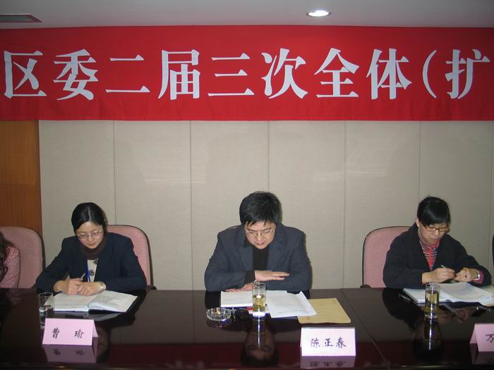 2009年1月6日下午,共青团常州市新北区委二届三次全体(扩大)会议在新北区政府隆重召开。 区委常委、组织部部长陈正春同志到会讲话。陈部长在充分肯定一年来共青团所做出成绩的同时,对下阶段共青团工作具体提了三点意见:一、进一步解放思想,积极投身学习实践科学发展观活动,要争当学习的表率、实践的先锋,真正做到用科学发展观统领全区共青团工作,不断开创团青事业科学发展新局面;二、进一步突出重点,全面服务新北经济社会科学发展,要积极投身社会主义新农村建设,大力促进青年科技创新创业,积极参与和谐社会建设;三、进一步夯实基础,巩固共青团事业发展的根本基础,要着力强化团的基层组织建设,重点加强团干部作风建设,努力提升团员队伍素质。 团区委书记曹瑜作了题为《不断实践总结 不断探索拓展 努力开创新北共青团工作新局面》的工作报告,回顾总结了2008年全区团的工作,并认真分析形势,研究部署了2009年的工作任务。会上,新北区人民检察院团支部、黑牡丹(集团)股份有限公司团委、孟河镇团委分别作了交流发言。同时对2008年度“青春加油站•自信课堂”系列主题活动成果进行了表彰。
