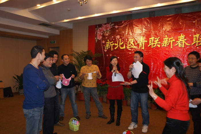 2010年2月26日下午,在元宵佳节即将来临之际,区青联在金陵江南大饭店举办了新北区青联新春联谊会。晚会伊始,区青联主席们与委员们面对面,总结了区青联的2009,展望了区青联的2010。委员们也热情参与,尽展其长,演绎了太极伴古筝、小品《武松打虎》、搞笑版《朋友》等丰富多彩的节目,进行了游戏最幸福时光、快乐踏板、诗词倒顺、猜灯谜等参与性强的活动。整台联欢在欢乐和谐的氛围中落下了帷幕。本次活动进一步加强了我区青联委员间的交流,凝聚了各界青年攻坚克难、自主创新、科学发展的力量,鼓舞了为高新区迎来新一轮经济飞速发展作出新的更大的贡献的信心。