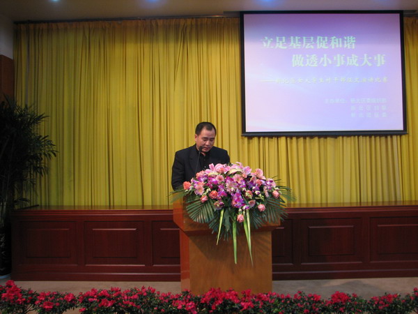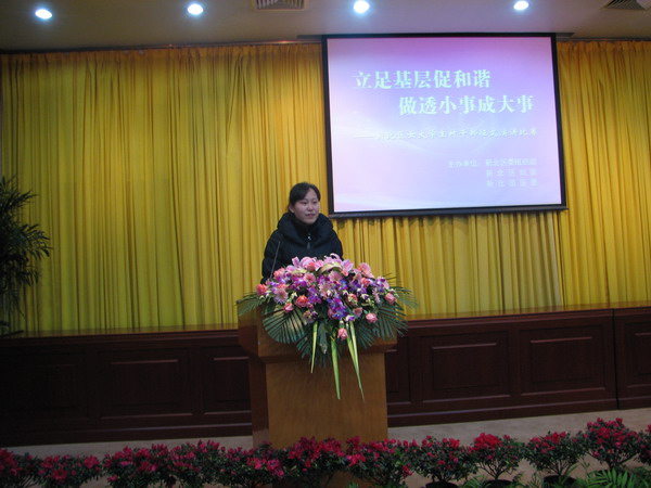 为展示基层女大学生村干部的风采,增强大学生村干部在我区新农村建设中的责任感和使命感,倡导大学生村干部的亲民爱民、带领群众共同致富的新风尚,3月1日,区委组织部、团区委、区妇联联合举办了“立足基层促和谐,做透小事成大事”新北区女大学生村干部征文演讲比赛。大学生村干部等100多人现场观摩了比赛。 全区41名女大学生全部参加了主题为“立足基层促和谐,做透小事成大事”的征文比赛,经过专家评审,15名优秀文章作者参加了演讲比赛。比赛时选手们结合自身实际,谈基层工作感悟,谈个人成长经历,由小见大,由浅入深,情真意切,现场观众深受感染,为女大学生村干部们的精彩表现报以热烈的掌声。经过激烈角逐,来自薛家镇的唐碧云演讲的《立足基层 激扬青春风采》荣获一等奖,万寅娇、恽丹、何小娟荣获二等奖,高飏、贺宝琛、周燕丹、方静、徐晓娇荣获三等奖。区委常委、政法委书记陆敏、区政府副区长胡秀芳、区政协副主席瞿晓凤等领导为获奖选手颁奖。 区委组织部副部长胥荣伟为演讲活动作了小结,他肯定了此次活动的意义,对女大学生的表现进行了高度评价,同时也表示组织部及相关部门在今后工作中将予以大学生村干部更多的帮助和支持,为大学生村干部立足基层干事创业提供强有力的组织保障。