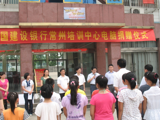 2010年7月6日上午,中国建设银行常州培训中心纪委书记、副主任赵余分一行来到我区孝都小学,为孝都小学、吕墅小学各捐赠了50台电脑。 今年5月,团中央下发了《关于开展“共青团关爱农民工子女志愿服务行动”的通知》,建行常培中心积极贯彻落实文件精神,利用身边可利用的资源,通过常州团市委、新北区团委的沟通联系,确定了2所新市民子女比例相对较高的小学——孝都小学和吕墅小学,结对开展此次电脑捐赠活动,将100台电脑捐赠给学校,丰富学校的教学资源,推动新北教育文化事业的发展。 捐赠仪式上,建行常培中心赵余分主任发表了热情洋溢的讲话,他强调,希望通过此举能够向两所小学尽一份微薄之力,让孝都、吕墅的孩子们,在信息高速发展的今天,可以与时俱进,共享高科技带来的文化,争当全面发展的“四好少年”,以后为建设祖国、建设家乡贡献力量。 团市委志愿者工作部丁凌云副部长和赵余分主任共同为两所学校授牌。孝都小学校长匡龙兴代表受赠学校发言,激动的话语中饱含了对建行常培中心捐赠电脑的深深谢意。 捐赠仪式结束后,赵余分主任一行人参观了孝都小学校园。