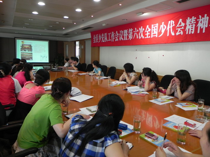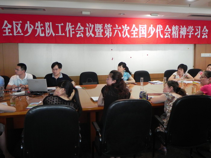 为及时传达学习第六次全国少代会精神,进一步推进全区少先队工作,2010年7月15日下午,区少工委在区政府1508会议室召开了全区少先队工作会议暨第六次全国少代会精神学习会。区少先队总辅导员恽志寅从第六次全国少代会的大会背景、大会主题、大会特点、大会经验等方面,就少代会精神作了深入的传达。团区委副书记、区少工委主任万丽平结合暑期少先队工作,对下一阶段如何贯彻落实少代会精神做出了安排。全区各小学少先队大队辅导员20余人参加了此次会议。