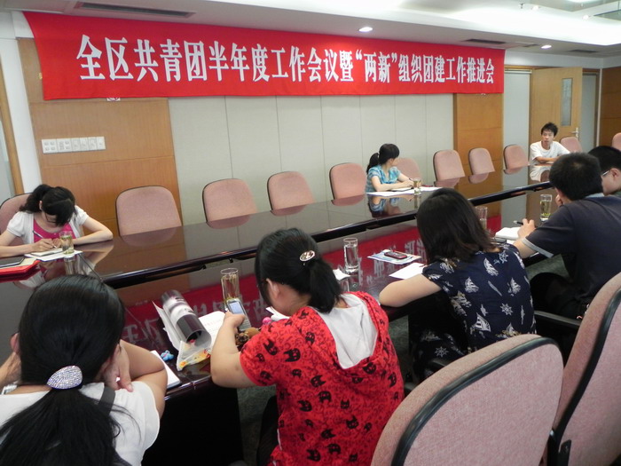 2010年7月15日上午,新北区团委在区政府1505会议室召开了全区共青团半年度工作会议暨“两新”组织团建工作推进会。会上,各镇、街道、直属单位团组织分别交流了上半年度团工作开展情况,并就非公有制经济组织和社会组织团建工作进行了激烈的讨论。团区委副书记万丽平总结回顾了全区上半年度共青团工作,并部署了下半年度工作,重点对“两新”组织团建工作推进提出了三点要求:1.坚持面、片、点结合,深化共青团组织覆盖;2.坚持多措并举,增强“两新”组织团建水平;3.坚持思想行动统一,续推“两新”组织团建工作。