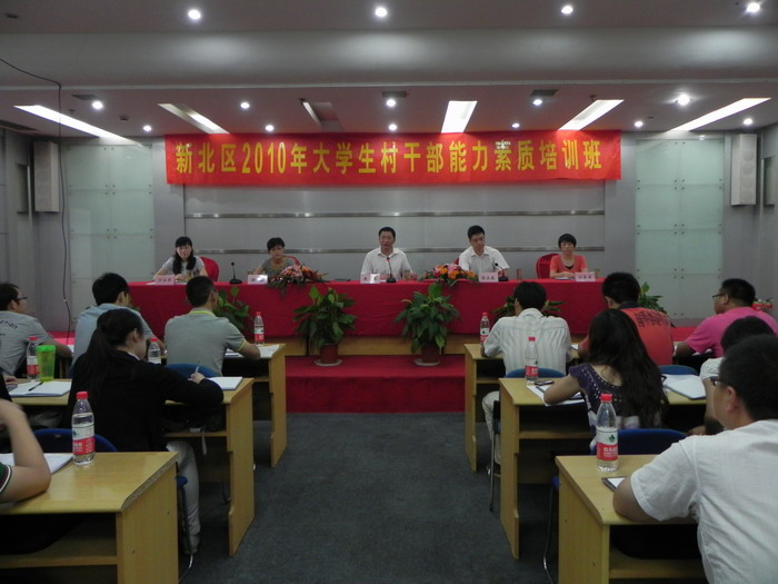 2010年9月15日,由区委组织部、区委党校、团区委、区妇联联合举办的新北区2010年大学生村干部能力素质培训班正式开班。市委常委、区委书记戴源作开班动员。 下午,团区委副书记万丽平为大学生村干部们上了一堂生动的团务知识课,介绍了团的基础知识、团的品牌活动,强调了团组织参与做好大学生村干部工作的目标要求,即大学生村干部 100%兼任所在村团组织书记或副书记;有大学生村干部的乡镇100%建立大学生村干部团组织;市、区两级 100%建立大学生村干部联谊会等联系机制,大学生村干部100%承接团建项目。同时号召大学生村干部们积极行动,参与到“走进高新•感受新北”大学生村干部青春采风行动中来,掀起青春采风的新的高潮。