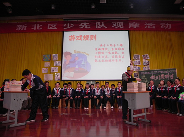 观摩活动中,三井实验小学的姚澄老师给五(5)中队的队员们带来了一堂“我们爱科学”主题班队活动,利用新颖的情境设计——穿越,充分的实践活动——采访、科学实验等形式增强了队员们的科学意识。泰山小学四年级组联合队会“科学魔力秀”,让队员们发现魔术中的科学知识,从而运用科学知识解决身边的实际问题。两堂班队主题活动,形式新颖、气氛浓烈,给辅导员老师和队员们留下了深刻印象。