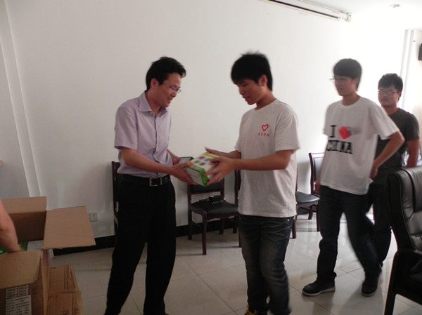 团区委代表区委、区政府为建东学院的志愿者们送上了慰问品。