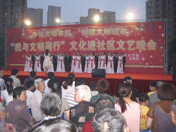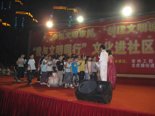 晚会节目形式多样,内容丰富,常州工程学院师生精彩的演出引起了场外观众的阵阵掌声。精彩纷呈的娱乐节目之外,轻松有趣的互动环节也吸引了在场居民的踊跃参与,在举办娱乐晚会的同时宣传文明创建知识,让社区居民在娱乐休闲中受到了很好的宣传教育。