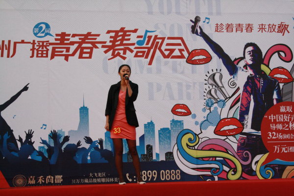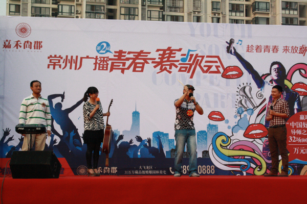 2012,“中国好声音”红遍荧屏,欣赏好声音学员们充满个性、魅力十足的演唱时,你会不会也跟着一起高歌呢?现在属于常州人自己的“好声音”也来到我们身边,由常州广播电台主办、新北区团委承办的“嘉禾尚郡”第二届常州广播青春赛歌会于10月20日下午3点在新北区太湖路广场正式拉开帷幕。初赛第一场共68位选手参赛,经过激烈的比拼,10位选手的歌声打动了在场评委以及现场的观众,最终进入了半决赛的争夺。