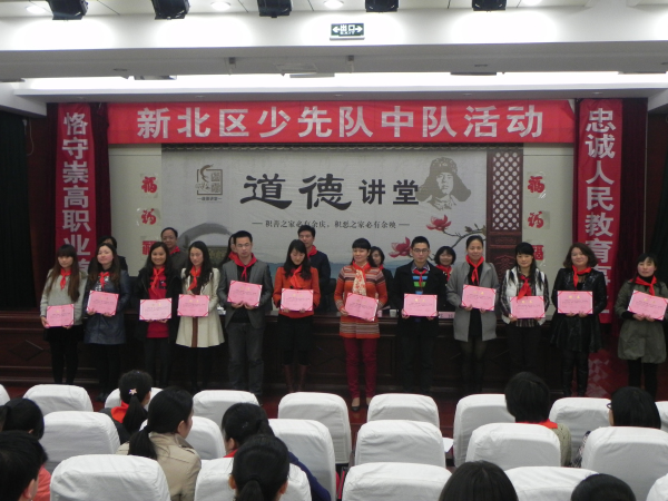 为培养灌输少年儿童对党和社会主义祖国的朴素感情,11月8日下午,党的十八大开幕之际,新北区少先队观摩活动在春江中心小学拉开帷幕。市总辅导员张莉、区少工委主任、团区委副书记徐俊、团区委副书记冉丹、区社会事业局组织人事处处长潘晨光出席活动。 本次活动由三部分组成。第一部分是观摩春江中心小学少先队鼓号队展示、参观非物质文化遗产展示馆,少先队员们高昂的精神状态、完美的讲解、非遗文化的丰富多彩给辅导员们留下了深刻的印象。 第二部分是由百丈中心小学、春江中心小学两位辅导员分别开展了以“我爱我的祖国”、“传承非遗文化”为主题的队活动。活动后,常州市少先队总辅导员张莉对两堂课给予了充分的肯定,同时强调了队活动必须遵循的四个原则:一是教育性强,二是活动紧紧围绕主题,三是做到队员人人参与,四是做到情趣并重。 第三部分是新北区优秀少先队辅导员培育工作室首批成员聘任仪式,工作室首批成员主要从片长、部分优秀大队辅导员以及市区两级辅导员风采大赛优秀选手中产生,力争使工作室成为培养全区优秀少先队工作者重要的发源地和孵化地。