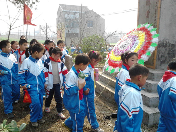 3月28日下午,西夏墅中心小学一、二年级的孩子在老师的带领下,步行二公里前往革命烈士张鹏云墓前举行缅怀革命先烈,清明节扫墓活动。