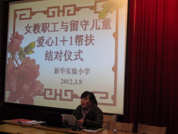 留守儿童是社会弱势群体之一,为了帮助留守儿童解决生活、学习、思想上遇到的困难和困惑,树立起战胜困难的信心,愉快地生活、健康地成长,顺利完成学业,3月8日上午,新华小学全体女教师以独特的方式庆祝自己的节日,开展了“爱心1+1”帮扶活动,一名女教职工与一名留守儿童结成对子。