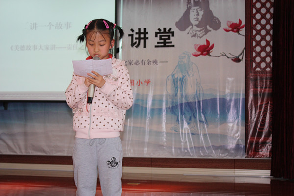 4月27日下午,百草园小学一月一主题的道德讲堂在四楼报告厅如期开讲了!本次活动围绕“劳动”一词按照五个“一”的流程开展了面向全体师生和部分家长的道德宣讲活动。 唱一首歌曲:在欢快的音乐声中,同学们饶有兴趣地唱起了《劳动最光荣》,体验了劳动带给我们的快乐。 诵一段经典:大家一起回顾经典,诵读了有关“劳动”主题的诗词。了解了历史伟人他们眼中劳动的含义,更明白了,作为学生,刻苦学习知识也是一种劳动。 看一段视频:其实劳动一词还蕴含着更深层的含义,勤奋、刻苦、责任、坚强等等都是“劳动”一词折射出来的美德光芒。在2012年感动中国的颁奖礼上,就有一位不向命运屈服,靠自己的坚强努力实现梦想的人,那就是刘伟。同学们在观看《用灵魂演奏生命音符》之后,在感动之余更加体悟到了他那种活着就是幸运,成功就要努力的乐观和坚持。 讲一个故事:在活动中,我校的“责任之星”——李琦同学向大家讲述了她去年发生车祸后仍在病床上坚持读书的故事。身在现场的李琦的妈妈也接受了采访,向大家介绍了当时李琦在病房中忍着疼痛不哭出来,为了不影响其他病友休息的感人一幕。感人的故事、母女的坚强让在座的学生和家长不由得送上了热烈的掌声。 之后,学校的道德讲堂宣讲员茅校长向大家讲述了很多有关成语背后的深刻含义,希望同学们要做一个有道德的人。 做一番点评:短短几十分钟的活动让人感慨万千,随后,很多同学和家长纷纷谈了自己的感受。他们和大家一起分享了对“感恩”、“坚强”、“责任”等关键词的理解。 此次道德讲堂,全体师生和家长收获满满,感触颇深。为培养学生的美好德行提供了良好的平台,也为百草园小学未成年人思想道德建设工作奠定了坚实的基础。