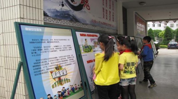 为切实做好学校食品卫生安全工作,培养孩子们的食品安全意识,全方位地抓好食品安全工作,使校园食品安全工作真正落到实处。2012年5月15日下午,新北区汤庄桥小学组织学生开展了以“关注食品安全,健康快乐成长”为主题的科普活动。 活动中,各班主任认真筹划,精心组织。通过阅读《学生食品安全读本》,观看《食品安全,健康成长》短片、《食品安全,健康成长》展板等活动,让学生对食物中毒的概念、食物中毒的危害、食物中毒的预防等知识有了清晰认知。在潜移默化中引导学生不断养成不在校园周边的流动食品摊点购买小食品、不购买“三无”食品,不吃过期变质食品等良好的卫生习惯。 通过这次活动,丰富了学生食品安全防范知识,提高了学生食品安全的自我保护能力,增强了学生讲文明、讲卫生、关注饮食健康的自觉性和责任感。许多同学表示,要远离小摊小贩,不吃不洁净的食品,不买“三无”食品,平时要勤洗手,多锻炼,防止病从口入,使自己能够好好学习,从我做起,健康快乐生活每一天!