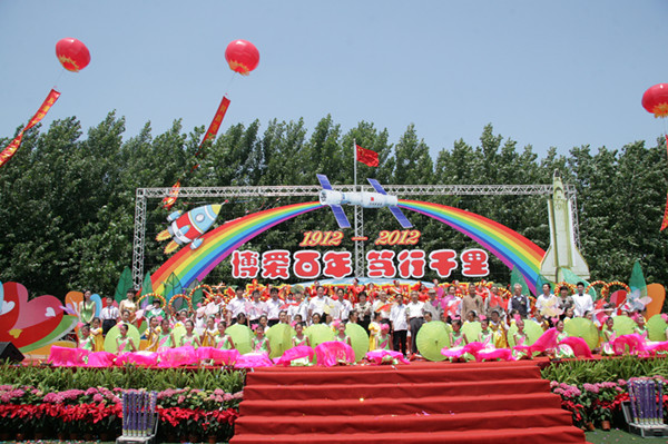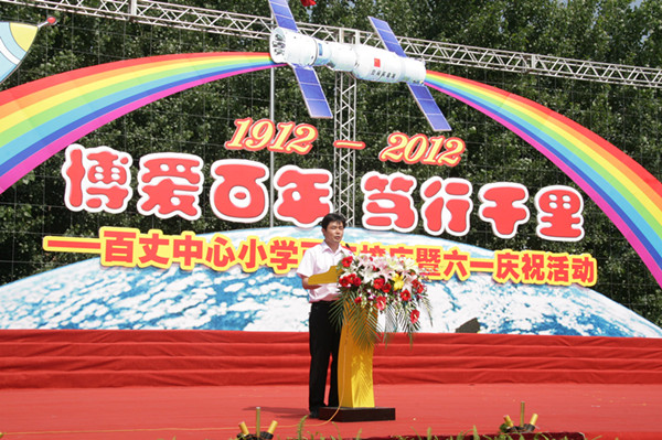 龙城北部,长江之滨,美丽春江,在这里坐落着一所百年老校,她创办于1912年,原称依东乡第一初级小学,是一所祠堂小学。她经历百年沧桑却经久不衰,承载百年积淀而青春焕发,她就是——常州市新北区百丈中心小学。在百年的岁月长河中,百小以“尊重生命,享受教育”为办学理念,以科技教育和关爱教育为办学品牌,并在近几年中取得了令人瞩目的成绩。 2012年5月28日,注定在百小的教育发展史上写下灿烂的一页。“博爱百年,笃行千里”――常州市百丈中心小学百年校庆暨六一庆祝活动在百丈中心小学塑胶操场上隆重举行。在本次校庆活动之前,学校先后开展了迎校庆师生征文活动,主题板报、小报评比活动、师生技能竞赛活动等,在两个多月中,大家用自己的行动纷纷为百小百年华诞献礼。本次校庆活动受到社会各界人士的关心与大力支持,常州市副市长居丽琴专门为学校百年校庆作了“博爱笃行”的题词,校友盐城市副市长丁建奇寄来贺信,新北区社会事业局、春江镇人民政府赠来贺信,市、区、镇的领导、校友来宾、社会各界人士和全体师生等1600余人出席本次庆祝活动。 红杏枝头春意闹,百年老校焕新姿。大红灯笼如红霞般笼罩在校园内,几十条直幅从灯笼顶倾泻而下,尽显节日的热闹与隆重。鼓号队的乐声响彻云霄,同学们雀跃的声影、热情的欢呼在校门口大路两旁延伸。八点未到,就有校友陆陆续续地来到了校园。他们的脸上洋溢着笑容,带着激动,带着期盼……今天的百小校内热闹非凡,随处可见的是师生久别重逢、老同学久别相见、老教师各自分飞又再次相逢的感人场景……大家忙着合影、叙别情,每个人的脸上都洋溢着笑容,有欣喜,有感动,有幸福……今天的百丈中心小学,是一个欢乐的海洋。 上午九点整,礼炮齐鸣,彩带飞扬,庆典活动在操场的大舞台上正式拉开了序幕。鄂汉东校长代表全校师生致辞,新北区委副书记戴士福和新北区委常委、新北工业园区党工委书记宋建伟为本次百年校庆特别制作的“世纪情”雕塑揭幕。 庆典大会结束后,举行了“博爱百年,笃行千里”百年校庆专场文娱演出。此次文艺汇演内容丰富多彩、形式活泼多样:花开百小百年梦,在激情昂扬的学生大合唱校歌——《梦想起飞》中文艺活动拉开序幕;诗意地翻开百年的画卷,真诚地聆听岁月的倾诉,教师们用诗朗诵献给百小百年华诞;浸润着翰墨书香,沐浴着阳光雨露,百小学子茁壮成长,孩子们用活力四射的健身操表演向母校献礼;爱与生命同行,生命因爱而美丽,校园剧《小鸟归巢》《飞得更高》浓浓的师生情、同学情体现了百小的关爱特色……飞扬的歌声,吟唱难忘的岁月,熟悉的旋律,演绎时代的激越,文娱演出在一首《阳光路上》徐徐落下帷幕。表演的过程中每一位与会者都沉浸在百年校庆的喜悦之中,师生们用自己精彩的演出祝福母校百年生日,也抒发了新一代师生的满怀豪情。演出结束后,主席台就坐的各位领导与全体演职人员握手并合影留念。 100年风雨沧桑,100年薪火相传。百丈中心小学用她坚实的步伐走过了100年的风雨历程,有理由相信,百小全体师生将在“尊重生命,享受教育”的教育理念感召下,解放思想,与时俱进,求真务实,奋力拼搏,将以百年校庆作为新的起点,在历史的舞台上续写百小新的辉煌篇章。