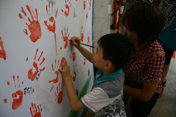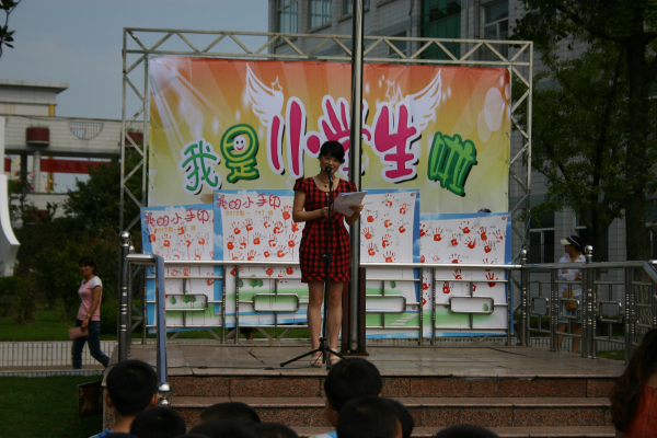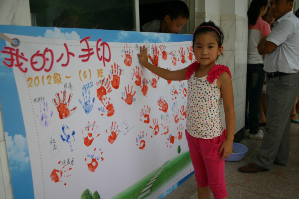 9月1日常州市中小学报到的第一天。这天下午,在新北区西夏墅中心小学的校园内,280多名一年级新生和三百多名家长齐聚操场,隆重举行了一年级新生入学礼。 这次入学礼内容丰富,形式多样,既有校长致辞、恩师介绍、家长寄语、新生感言、教师授书,又有入学留影和手印签名。最有意义的是学校为每个班级都制作了手印板,让每个孩子在上小学的第一天留下珍贵的纪念。一个个鲜红的手印,就像一朵朵花儿绽放,他们用稚嫩的笔触一笔一划签上自己的大名,待到六年之后的毕业典礼上再拿出来看一看、比一比,自己长大了多少,那将是一件多么有意义,多么让人欣喜的事呀!每个孩子还在“我是小学生啦!”巨幅背景墙前拍照留影,记录这一神圣的时刻。 活动虽然短暂,但受到了所有家长的一致好评。许多家长都对学校开展这项工作表示称赞与感谢,纷纷表示:这是孩子在西小跨出的第一步,但孩子和家长都深深感受到了西小教师的亲切和那份高度的责任感,让自己的孩子在这样的学校上学,一百个放心。