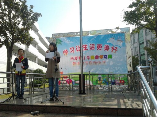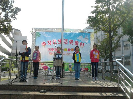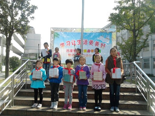 在金秋明媚的阳光中,有一种书香在此飘逸,有一种主题在此激活,有一份快乐在此绽放。10月23日,是一个特殊的日子,西夏墅中心小学一年一度的全民终身学习周暨读书节隆重开幕了。 本次读书节的主题是“读书成习惯,学习伴成长”,首先课程部的张丽娟老师向学生们提出了三点希望:1、要养成爱读书的习惯,2、读书要做到持之以恒,3、平时还要经常参加读书活动。接着四位同学化身为“故事书”“科普书”“报纸”和“生活”,激励西小的孩子们以书为伴,以书为舟,一起走向书的海洋。最后,学校的四位校长捧起了崭新的书本,庄重地交到了孩子们手中,这份赠书,满载着老师的期望:希望孩子们能从读书中获得新知,能在读书中获得快乐,能在读书中获得一个“丰收”的读书节,能在读书中获得一种终身学习的生活方式。相信西小的孩子们将与好书相伴一生!