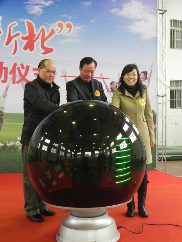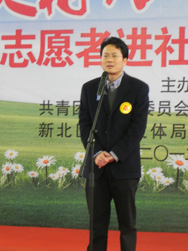 团区委书记万丽平介绍了“薪火青年志愿者服务站”和“薪火相传•情暖新北”青年志愿者进社区活动的情况。区社会事业局党工委书记、局长徐俊、区文明办主任黄维、团区委书记万丽平,共同按下启动球,激活了薪火青年志愿者服务徽标。
