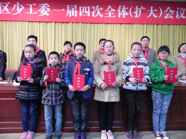 新北区少工委与3月20日下午在区政府3楼创业厅召开一届四次全体(扩大)会议。各镇团委、街道团工委负责人,一届少工委委员;各小学少先队大队辅导员参加会议。团区委书记万丽平,区社会事业局副局长、教育文体局局长卞优文,团区委副书记、区少工委主任徐俊等领导同志到会并讲话。区少工委副主任吴琼主持会议。 会议首先由团区委书记万丽平作《关于区少工委副主任卸职替补的确认案》的说明。接着团区委书记、区少工委主任徐俊作工作报告。徐书记回顾了2012区少工委的工作,部署了2013年全区少工委的各项工作,要求大家以十八大精神为引领,开展“红领巾心向党”活动,加强少先队文化建设,不断提升辅导员队伍素质。会议的第三项议程是表彰先进,2012年度少先队工作优秀学校、先进学校;“自护365”活动先进集体以及“自护小能手”分别上台领奖。对于荣誉大家感到振奋,对于未来的工作过充满期待。 会议最后,区社会事业局副局长、教育文体局局长卞优文对全区少先队工作提出希望:一要认清形势、与时俱进、改革创新。要求少先队工作要紧跟时代步伐,不断创新工作方法,在新时期彰显少先队的风采。二要扎根现实、用好平台、履职有为。基于少先队工作的基本情况,以合理的工作方式开展工作,使全区少先队工作不断迈向前进。