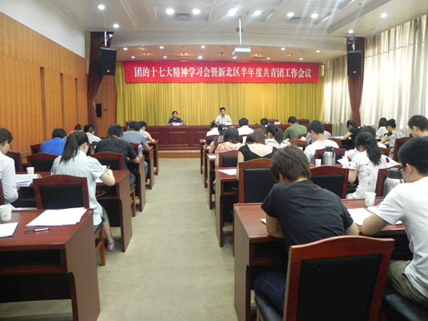 7月17日,团的十七大精神学习会暨新北区共青团半年度工作会议在区政府三楼创业厅召开。各镇团委、街道团工委书记、副书记,各直属单位团组织负责人,团区委直接联系企业团组织负责人参加会议。团的十七大代表、武进区团委书记王伟强同志,新北区团委书记徐俊同志出席会议。 武进区团委书记王伟强结合自身参加十七大会议的感受从大会的基本情况、党中央祝词、大会工作报告、所见所闻四方面描述了团的十七大盛会,传达了会议精神。 新北团区委书记徐俊从着力提升实效,强化青少年思想引导工作;创新工作理念,探索构建开放型共青团组织格局;打造载体平台,全面提升共青团品牌意识;夯实基层基础,增强共青团及外围组织活力四个方面总结了全区上半年度共青团工作。结合下半年工作重心,从实施“三创三先”励志教育,服务青年就业创业,培育青年人才,社会公益服务体系建设,重点青少年群体服务,青年文化活跃,基层团建深化,团干部、少先队辅导员队伍培养八个方面对下半年的工作进行部署和要求。 会议还下发了关于“开展我的中国梦”主题教育实践活动、开展非公企业团建“131”行动、明确新北区“一镇(街道)一特色”创建项目三项通知,进一步突出基层团工作特色,加强非公企业团建。