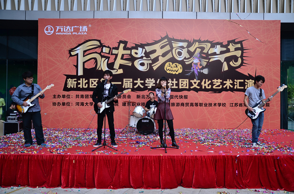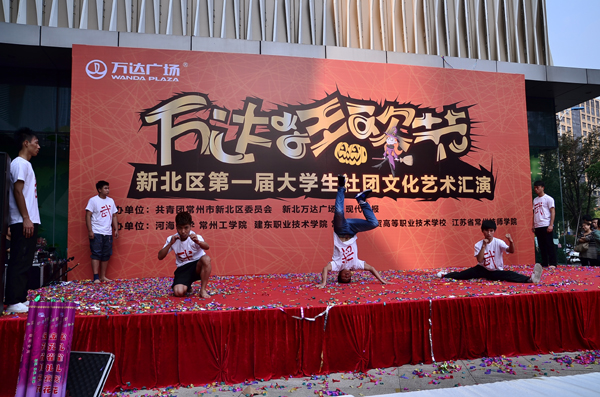 10月20日下午,由共青团常州市新北区委员会、新北万达广场、现代快报共同主办,河海大学团委、常州工学院团委、建东学院团委、常州旅游商贸学院团委、常州高级技工学校团委共同协办的新北区第一届大学生社团文化艺术汇演在新北万达广场隆重开幕。 青春是一支歌,跳跃着美妙的音符;社团是一幅画,描绘了多姿的生活;校园是一篇词,书写出青春的灿烂辉煌;文化是一支舞,积淀了社团的深厚底蕴;校园因社团而丰富多彩;社团因文化而独具魅力;文化因传播而蓬勃发展。此次社团文化艺术汇演不仅是一次社团文化的盛典,也是一次继往开来、独具特色的青春盛宴。 在接下来的两周时间里,每周日下午在万达广场还将有各学校社团上演丰富多彩的节目。也期待着常州各界大学生们能踊跃参加此次活动,丰富业余生活,繁荣校园社团文化,展现当代大学生综合素质和青春风采,也为新北区营造一个良好的文化活动氛围。