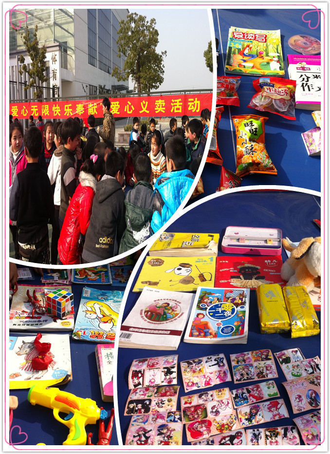 3月5日,我校少先队大队部组织全体同学在乒乓活动区举行“爱心无限,快乐奉献”爱心义卖活动。 活动中,同学们将自己闲置不用的学习用品、书籍、玩具以及零食、手工艺品等进行慈善义卖。活动当场的叫卖声可谓是此起彼落,同学们拉客的功力也不在话下。为了吸引顾客,一些同学在小铺前扯着嗓门大声喊道:“快来瞧瞧呀!买一送一,超级大甩卖啦!”有些同学还用上了当下时髦的促销手段—— “满5有抽奖”、“现场打折啦”…… 此外,班主任和任课老师也一同响应义卖活动,随到之处慷慨解囊! 爱心义卖活动历时一个小时,所有善款交由学校少先队大队部,用来帮助我校困难的小伙伴们。尽管我们个人的爱心看起来微不足道,但我们集体的爱心就会像大海一样包容每一个困难小伙伴的心,给他们以慰藉! 义卖活动结束了,但我们的爱心不会终止。让我们一起努力,让爱在我们手心传递。