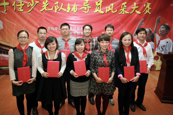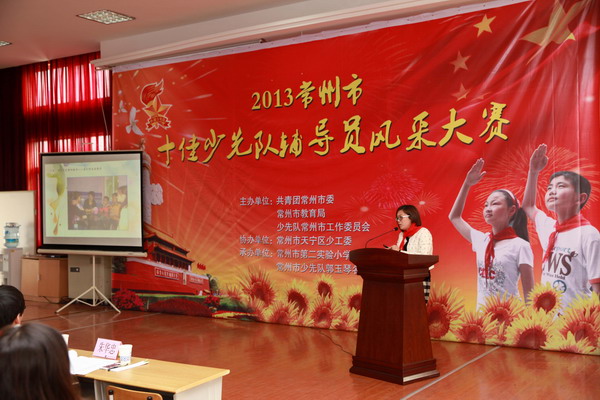 2013年10月29日下午,常州市“十佳少先队辅导员”现场评审暨常州市辅导员风采大赛在常州市第二实验小学教育集团翠竹校区举行,来自两市五区及教育团工委推荐的15名辅导员参加了角逐,经过五分钟自我介三分钟才艺展示及评委现场提问等环节的展示与考核,我区的潘志刚同志荣获常州市“十佳少先队辅导员”称号,秦玲同志荣获“十佳少先队辅导员”提名奖。