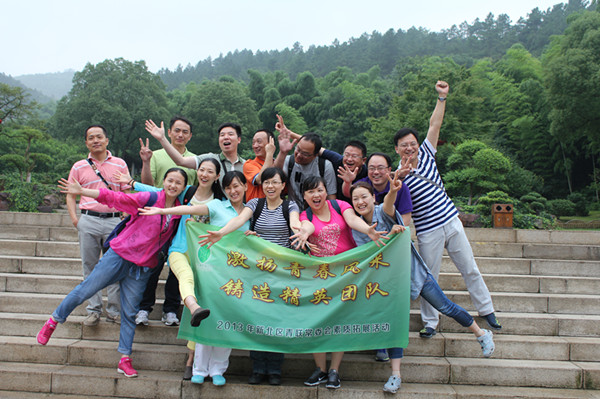 6月29日,区青联常委会素质拓展活动在苏州穹窿山进行,通过一系列互动合作和身体竞技活动,委员们加深了友谊,增进了感情。本届新北区青年联合会第三届委员会共有100人,他们分别来自经济管理、科技创新、公共管理、农业农村、社会事业等领域。此次拓展训练是该届青联组织的第一次活动。图为委员们在进行鼓动150的合作活动,每个委员需要相互配合、协调一致才能成功完成这个活动。