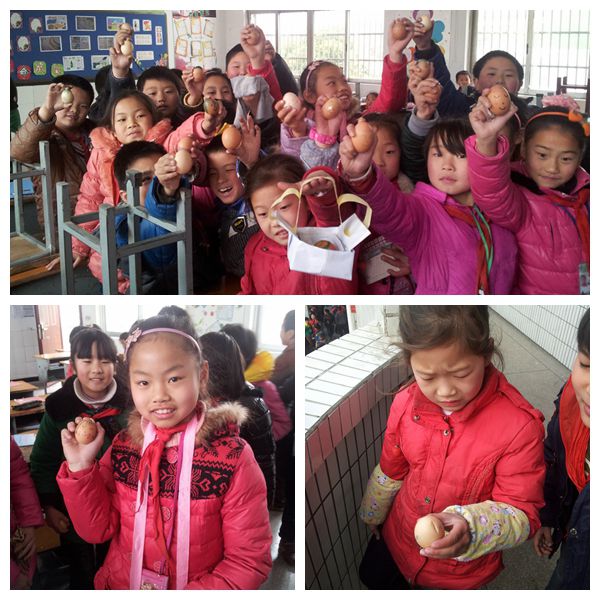 护蛋行动,一个颇有创意而有趣的活动——让每一个孩子把一只生鸡蛋带到学校,从早上上学到下午放学都要随身带着鸡蛋,带着自己的蛋一起上课,一起活动,一起吃饭……并想办法保护好鸡蛋,保护期为一天,要使它完好无损,蛋破即为护蛋失败。 在3月6日,在前期班主任老师的教育引导下,百丈小学中年级的学生便迎来了这样的一次知恩体验活动——护蛋行动。一早,每个孩子用着各种方式武装好了自己的蛋带到学校,并给自己的蛋起名,化妆,开始了一天的护蛋行动。孩子们无论做什么事,都带上了自己的蛋,小心翼翼的保护着,精心的呵护着,生怕一不小心会让自己的蛋宝宝受伤。 通过亲身体验,许多孩子深深感受到保护一个易碎的鸡蛋是多么不易,从中体会到父母在长期培养自己的过程中所付出的艰辛,同时,也明白了生命的可贵、生命需要关爱。
